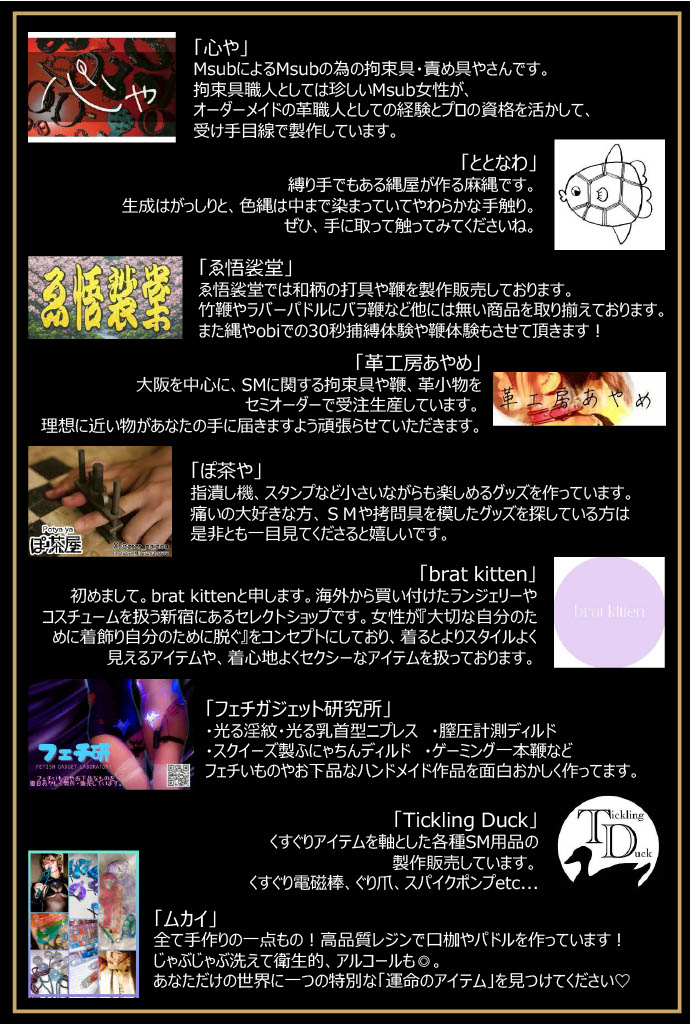 SもMも男女も問わずみんなの「欲しい!が見つかる」を目指した物販イベントです。