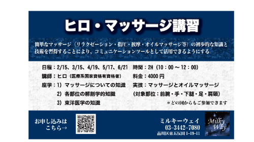 - 【ヒロ・マッサージ講習】