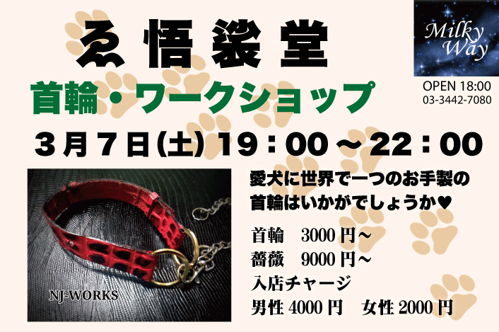 3/7(土)ゑ悟裟堂・首輪ワークショップ