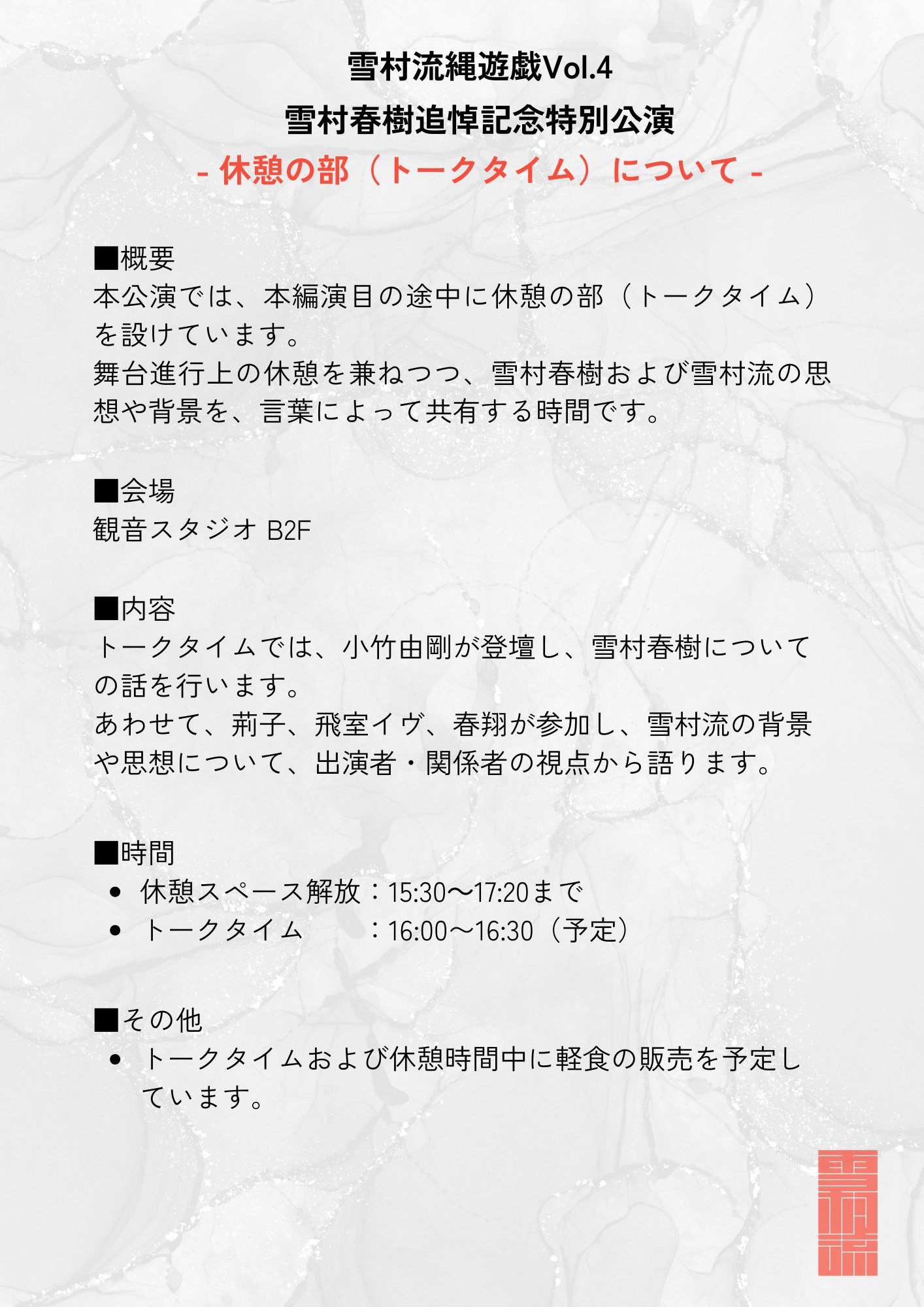 The performance will take place at Kannon Studio, a space deeply connected to Yukimura Haruki’s creative history.