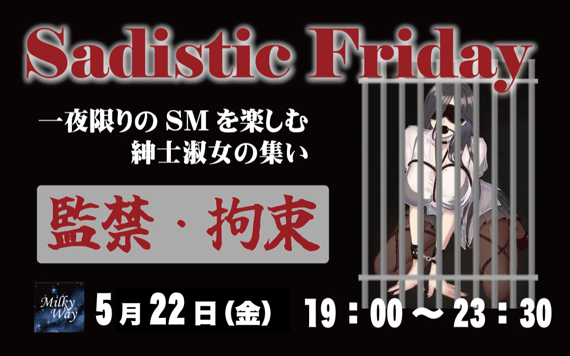 - 5/22(金)のサディスティックフライデーのテーマは「監禁・拘束」