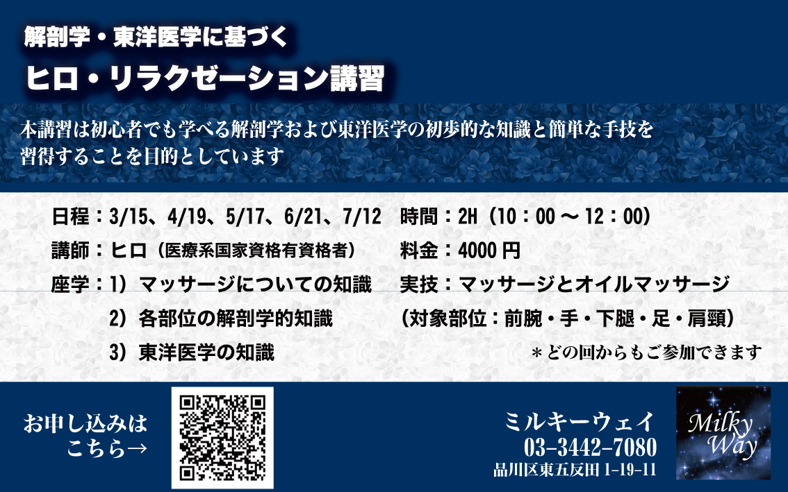 【ヒロ・マッサージ講習】 第1回「前腕」