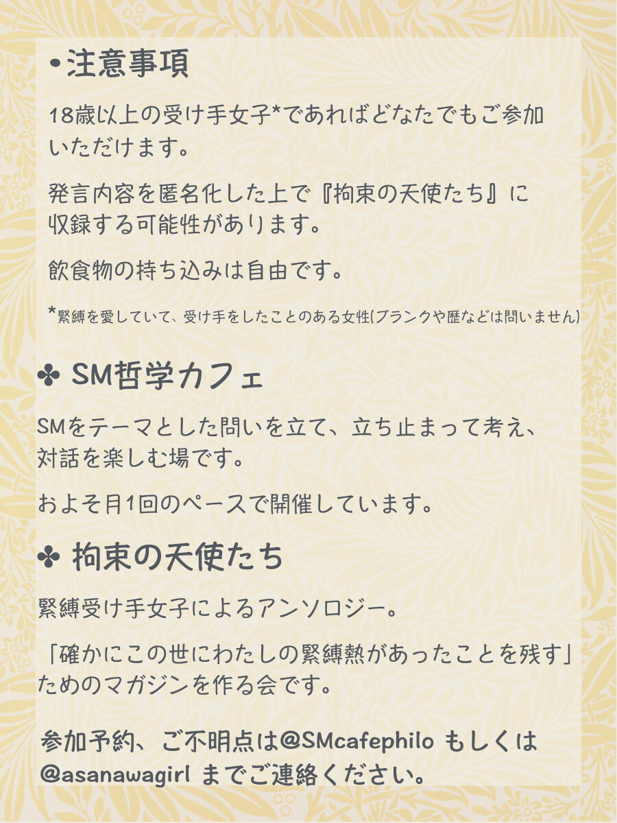 SM哲学カフェ×拘束の天使たち「緊縛に声があるなら?」